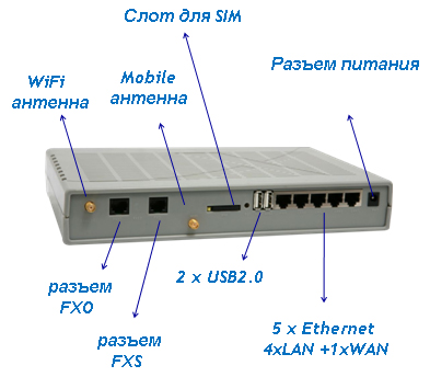 - 1 разъем FXS и 1 разъем FXO (следует учесть, что активным может быть только один)
