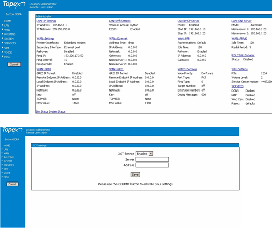 TOPEX Bytton - это серия маршрутизаторов для обеспечения высокоскоростной и безопасной передачи данных между сетями на основе стека протоколов TCP/IP посредством мобильных сетей GPRS/EDGE, а также HSDPA/HSUPA. В данной серии маршрутизаторов предусмотрена поддержка до 2 SIM карт, что позволяет обеспечить отказоустойчивость с использованием разных операторов связи. Дизайн Topex Bytton предусматривает использование в различных условиях. Маршрутизаторы выполнены в 2 вариантах: пластиковый и металлический корпус.